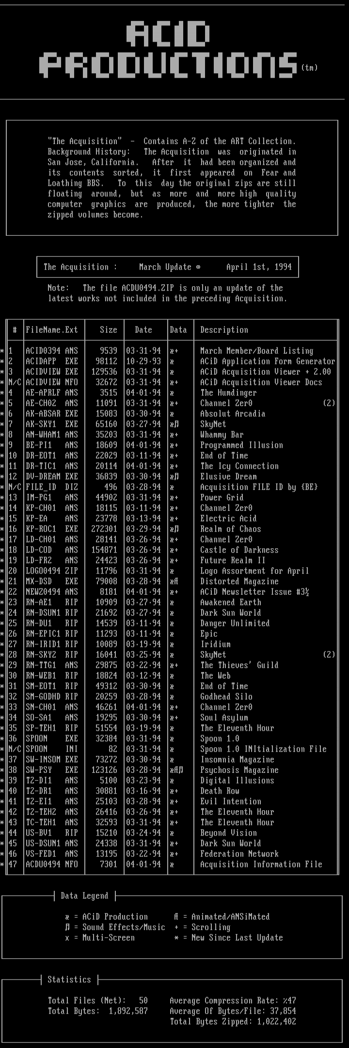*47 ACDU0494 NFO 7301 040194 Acquisition Information File