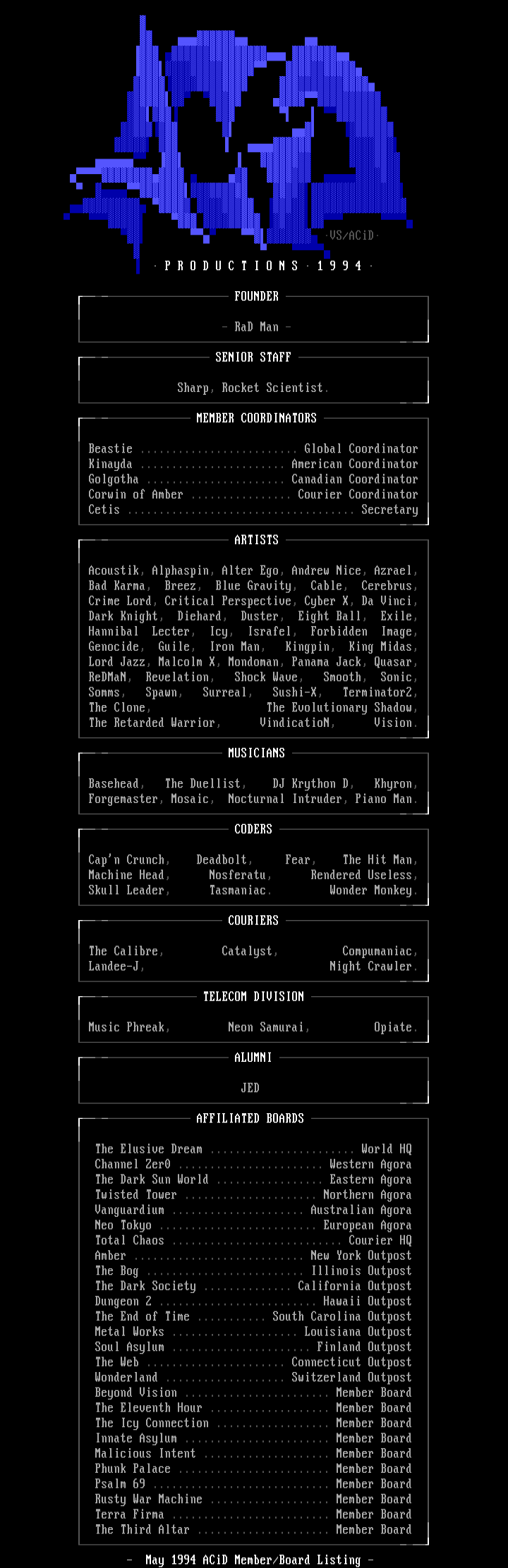 - May 1994 ACiD Member/Board Listing -