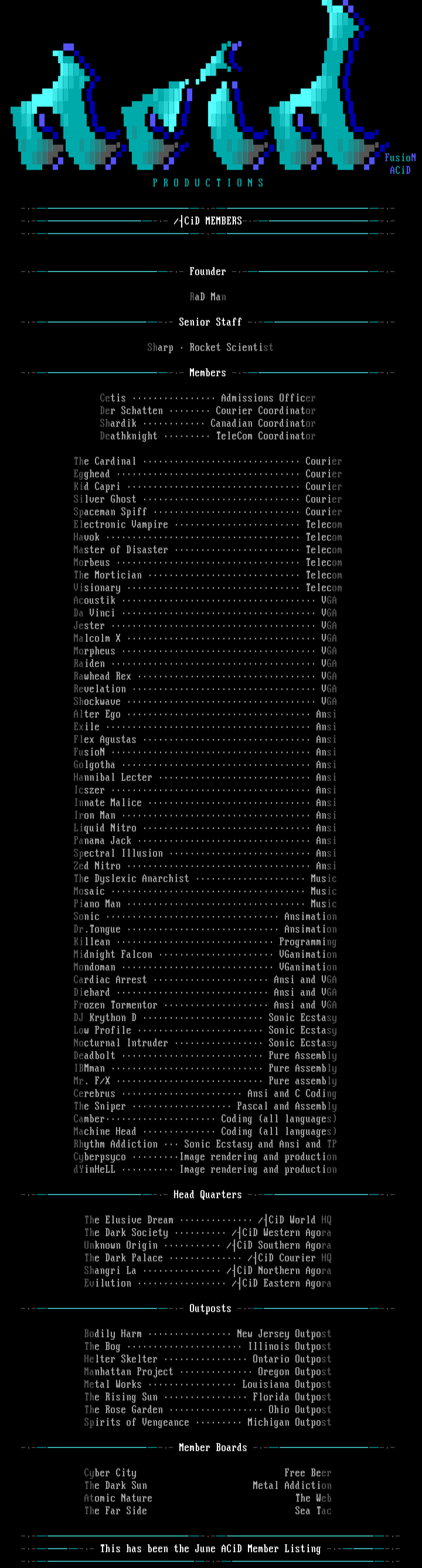 been the June ACiD Member Listing ---