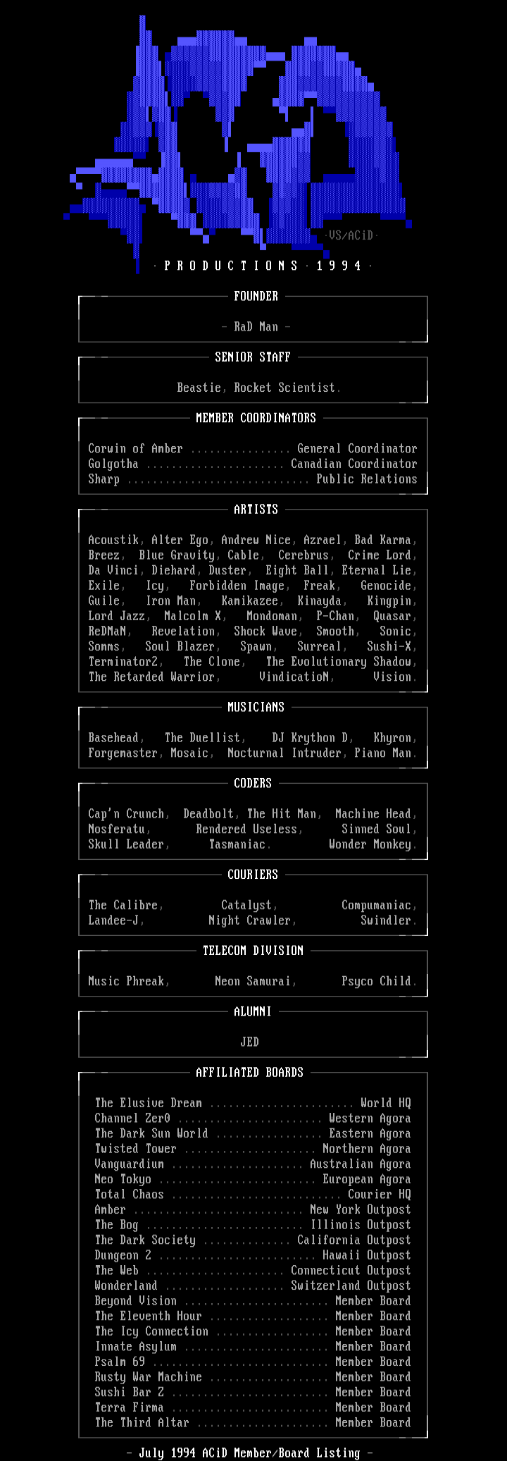 - July 1994 ACiD Member/Board Listing -