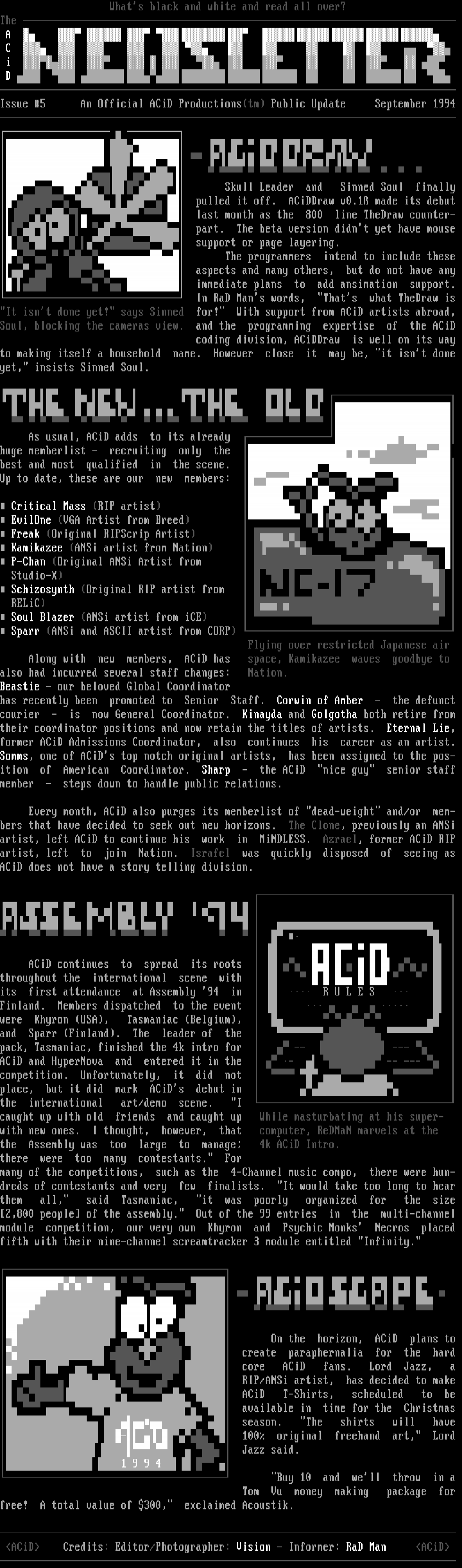 ACiD Credits: Editor/Photographer