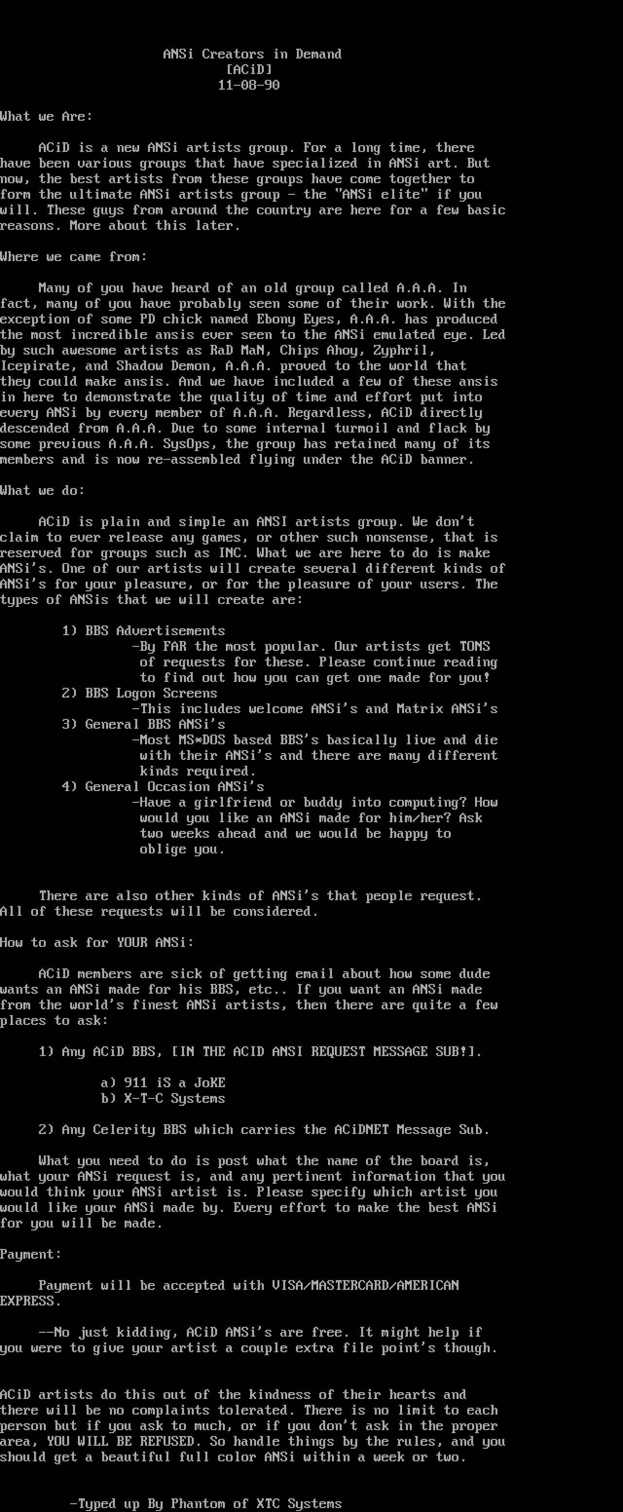 1 Any ACiD BBS, IN THE ACID ANSI REQUEST MESSAGE SUB!.