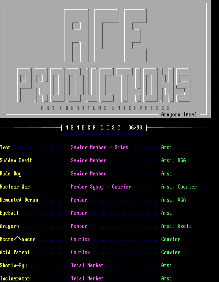 ron .................... Senior Member / Sites .......... AnsiSudden Death ............ Senior Member .................. Ansi, VGA