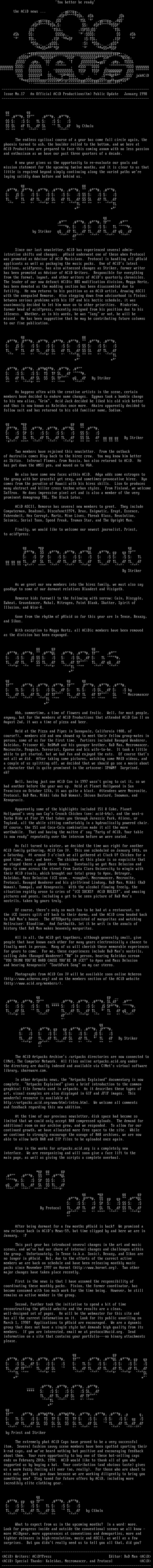 Issue No.17 An Official ACiD Productionstm Public Update January 1998