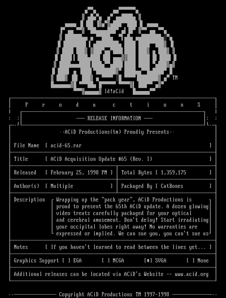 Additional releases can be located via ACiDs Website -- www.acid.org