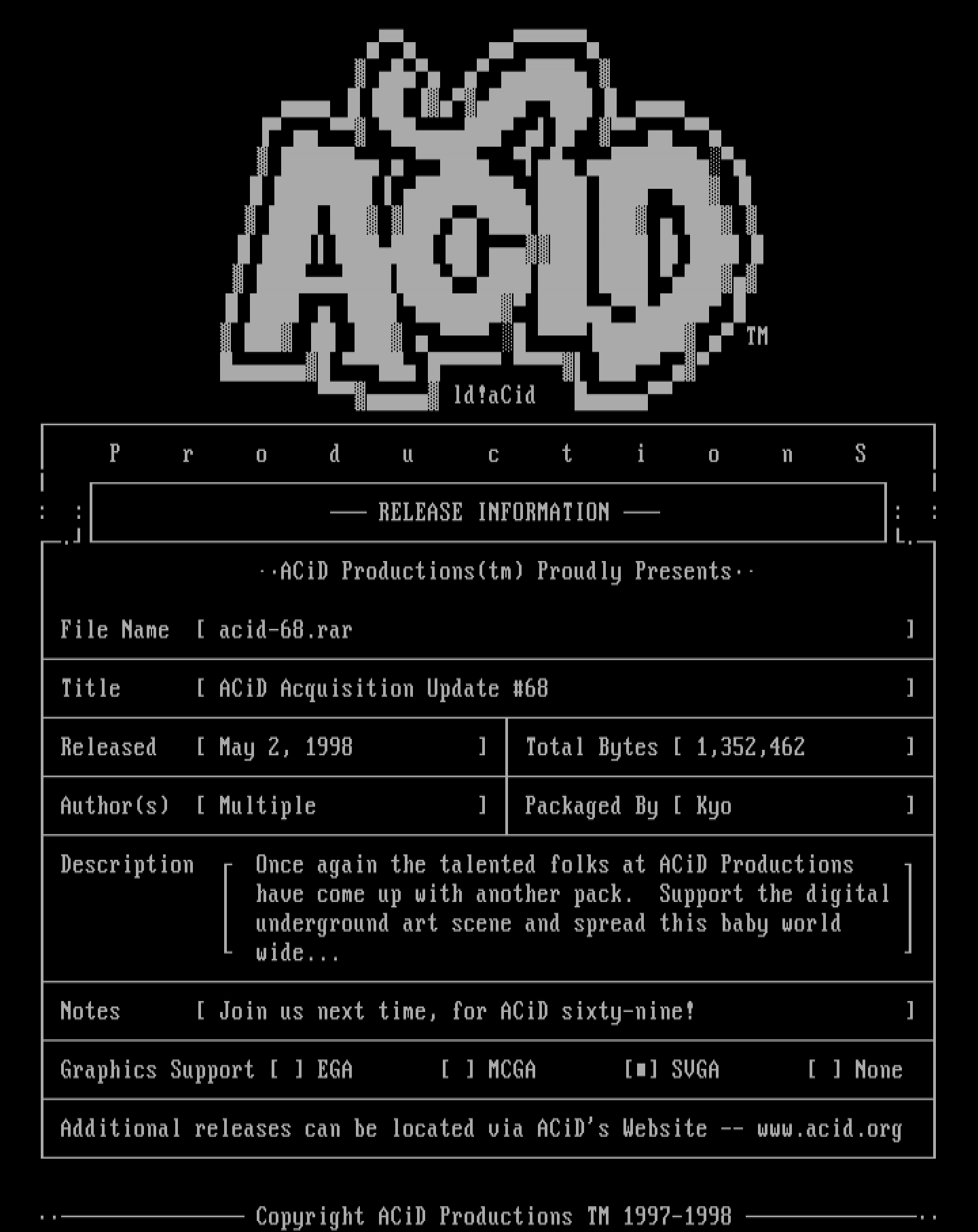 Additional releases can be located via ACiDs Website -- www.acid.org