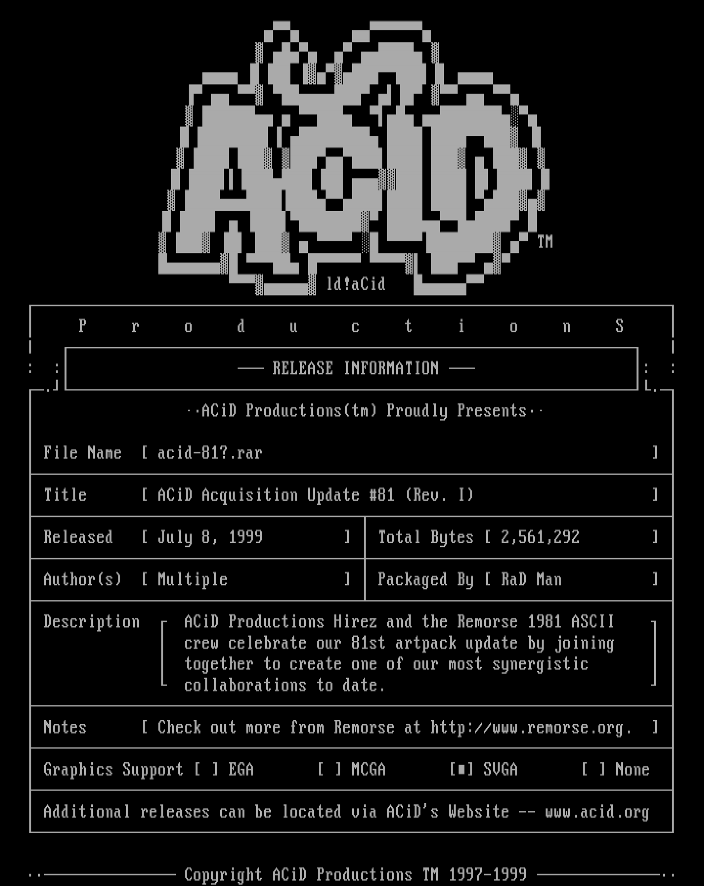 Additional releases can be located via ACiDs Website -- www.acid.org