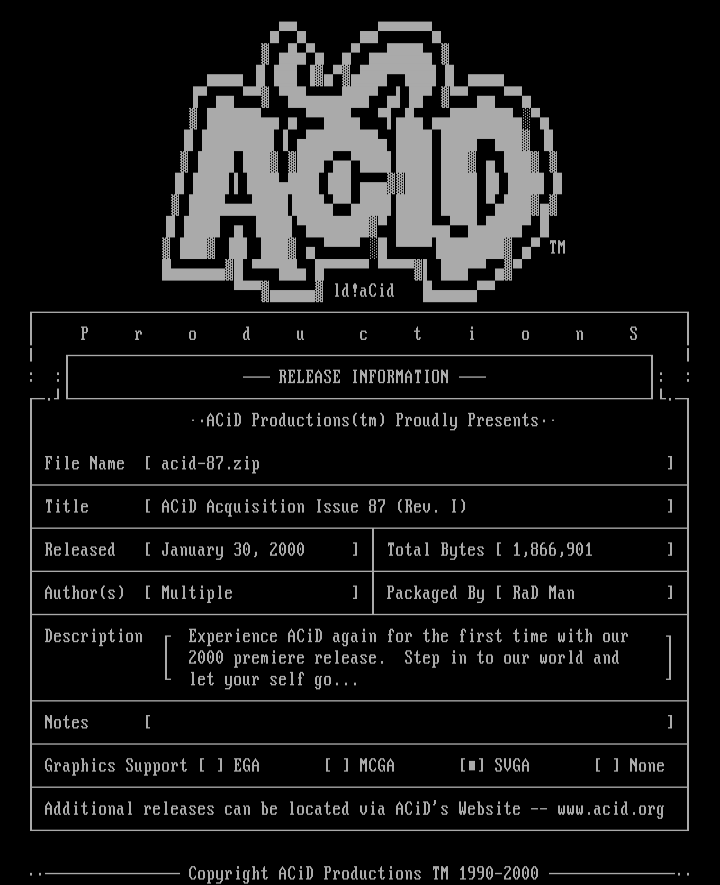 Additional releases can be located via ACiDs Website -- www.acid.org