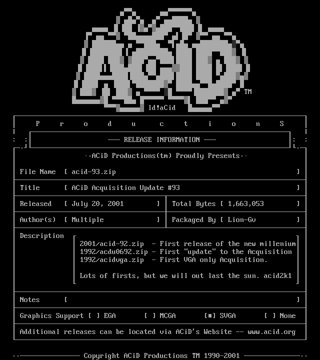 Additional releases can be located via ACiDs Website -- www.acid.org