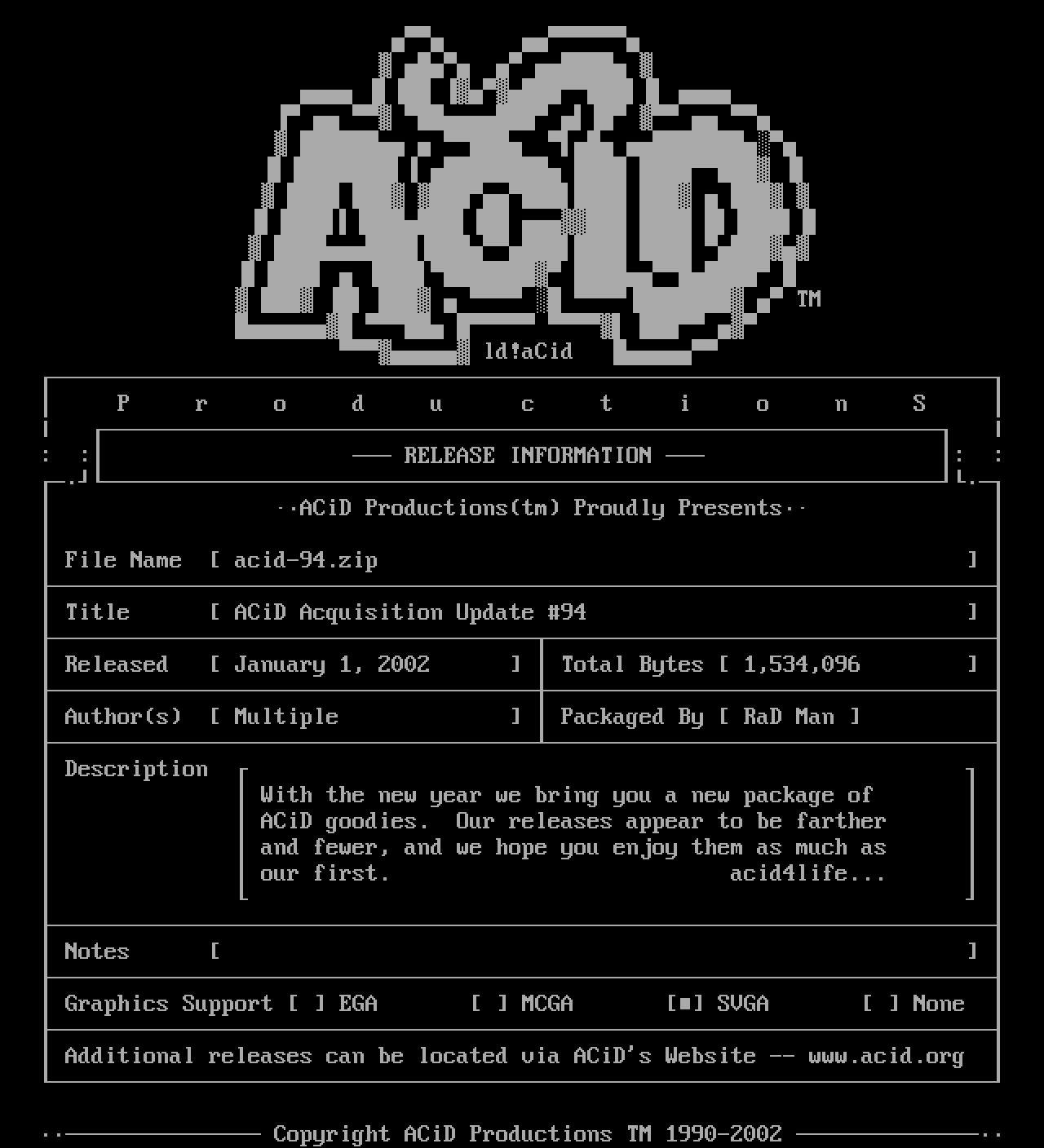 Additional releases can be located via ACiDs Website -- www.acid.org