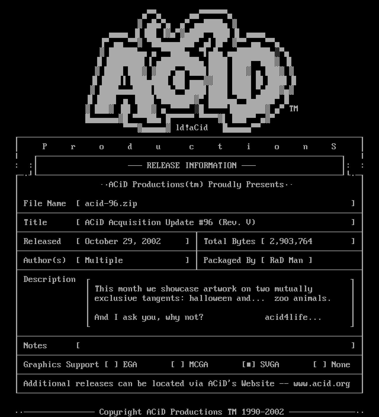 Additional releases can be located via ACiDs Website -- www.acid.org
