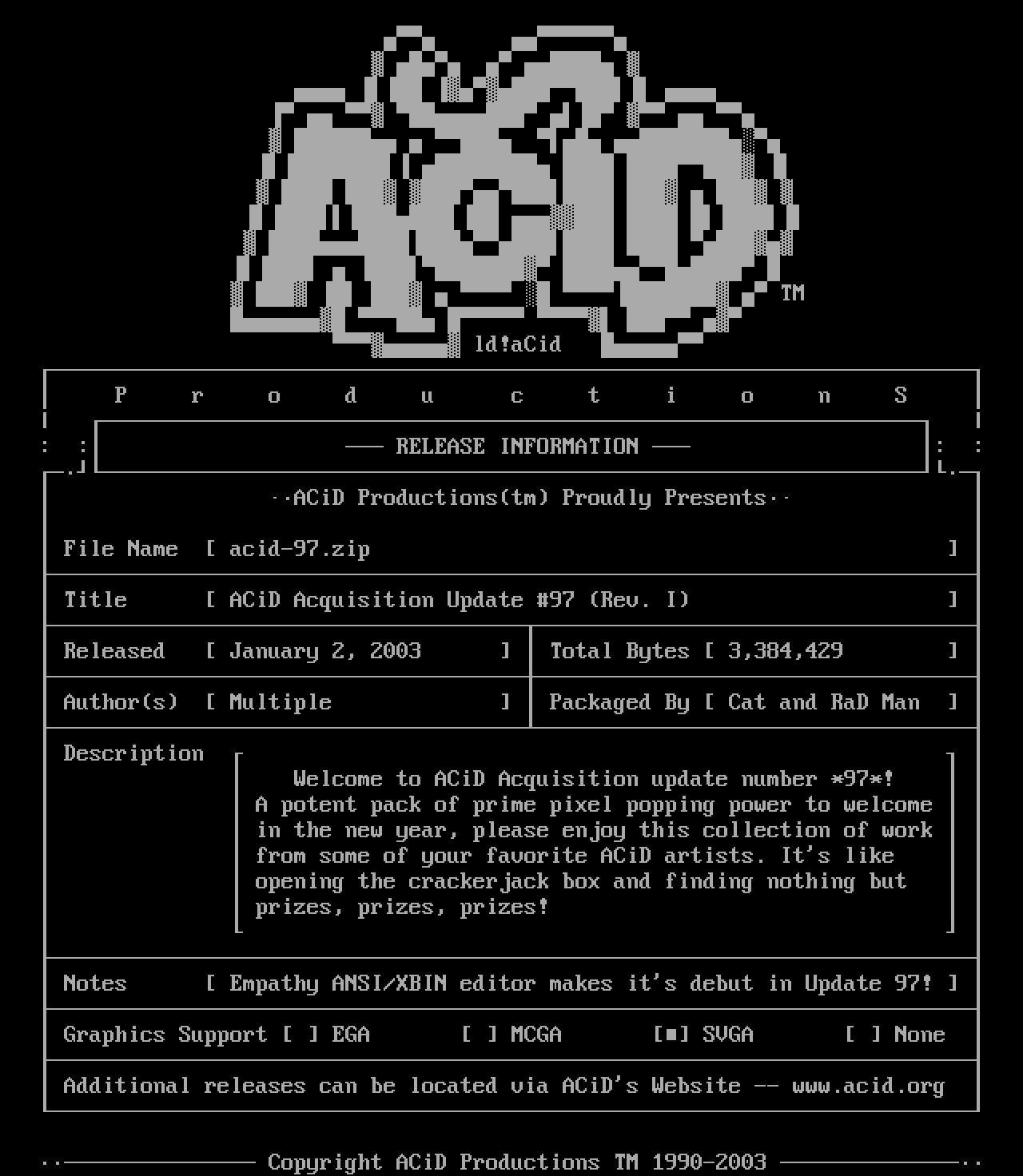 Additional releases can be located via ACiDs Website -- www.acid.org