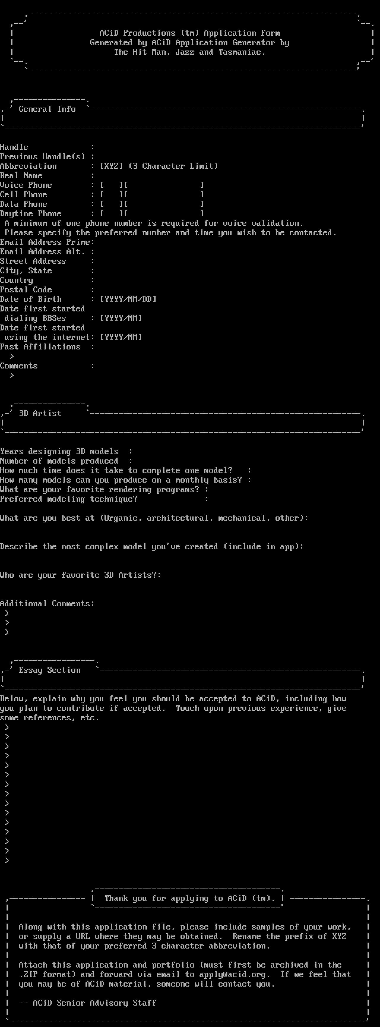 ,---------------- Thank you for applying to ACiD tm. ----------------.