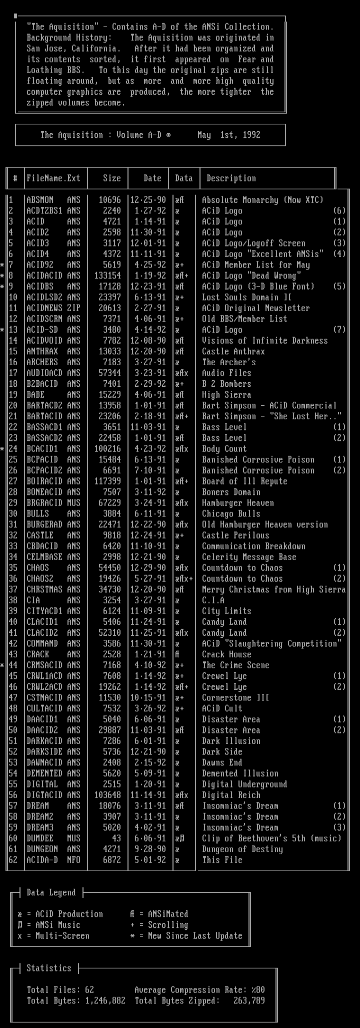 The Aquisition - Contains A-D of the ANSi Collection.