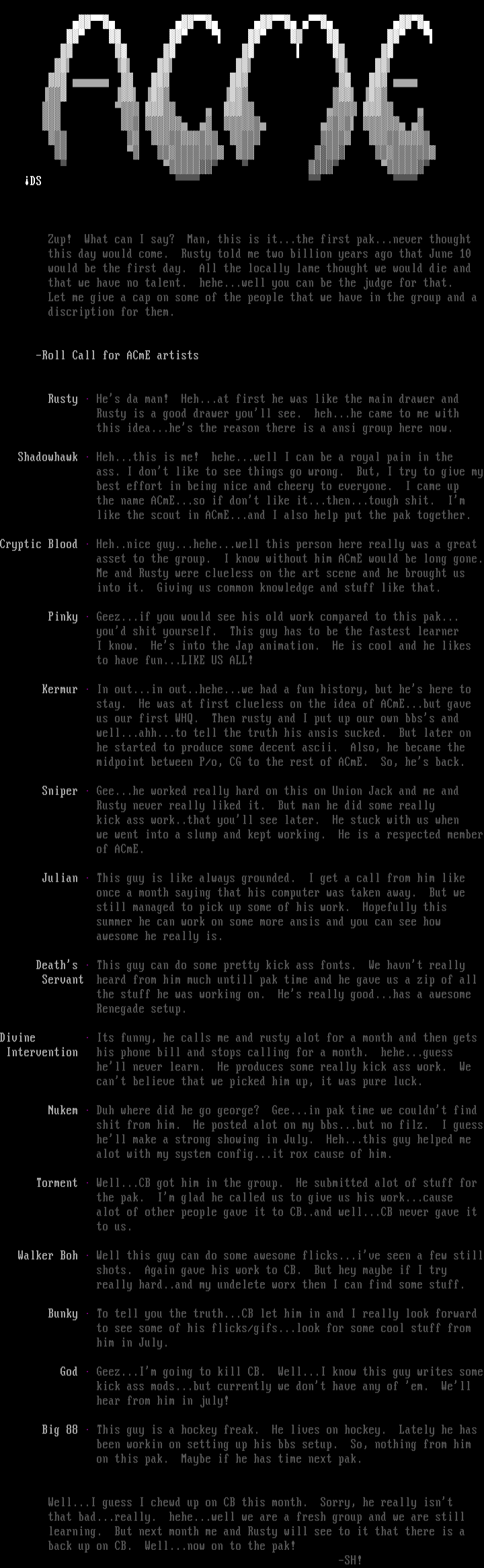 asset to the group. I know without him ACmE would be long gone. Me and Rusty were clueless on the art scene and he brought us