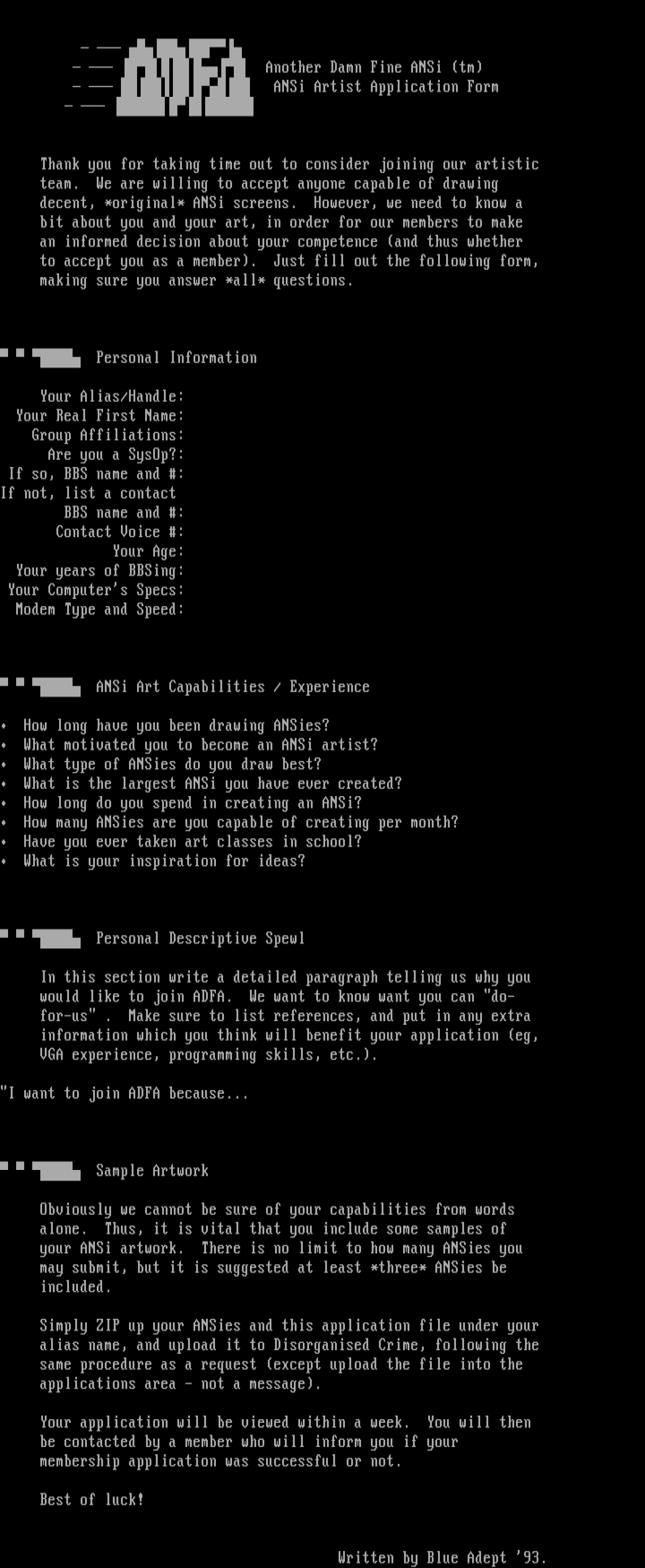 • application form