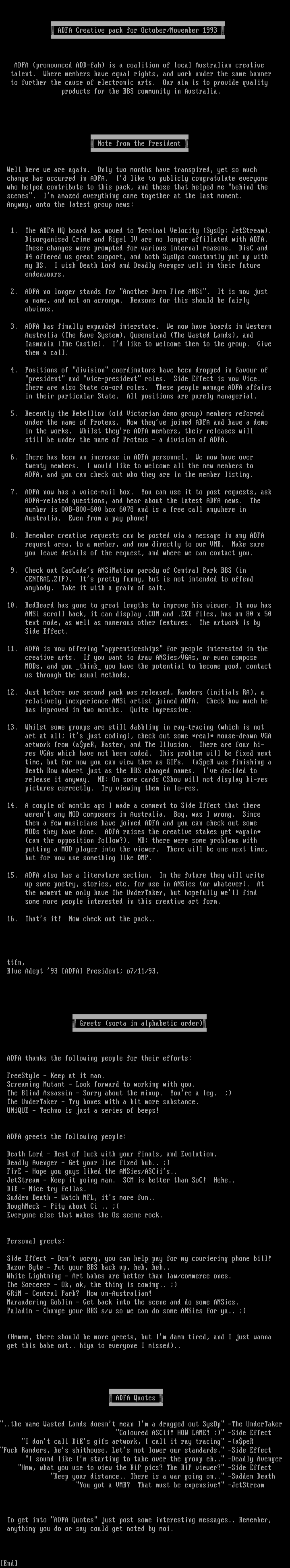 2. ADFA no longer stands for Another Damn Fine ANSi. It is now just