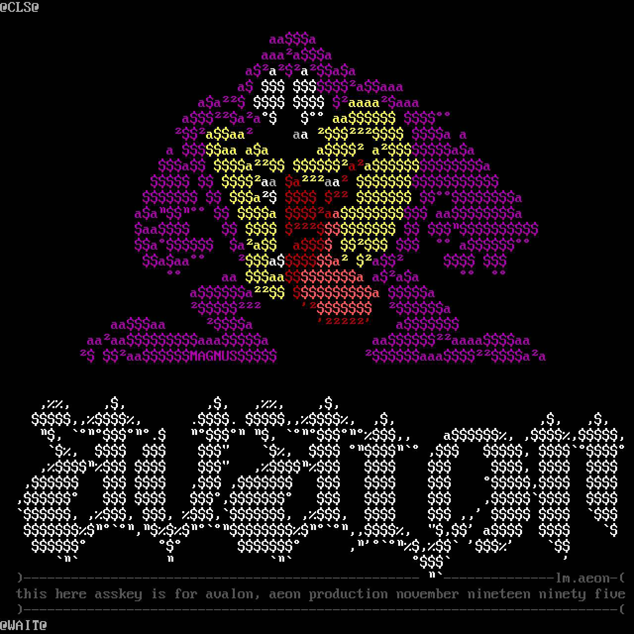 this here asskey is for avalon, aeon production november nineteen ninety five