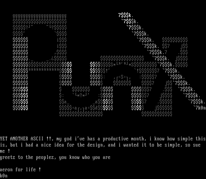YET ANOTHER ASCII !!, my god ive has a productive month, i know how simple thisis, but i had a nice idea for the design, and i wanted it to be simple, so sue