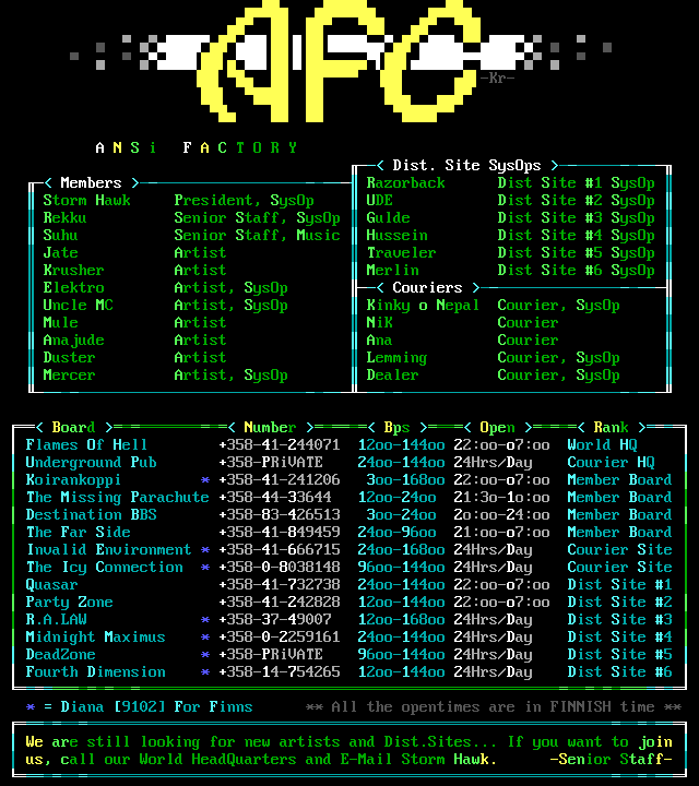 Destination BBS +358-83-426513 3oo-24oo 2o:oo-24:oo Member Board