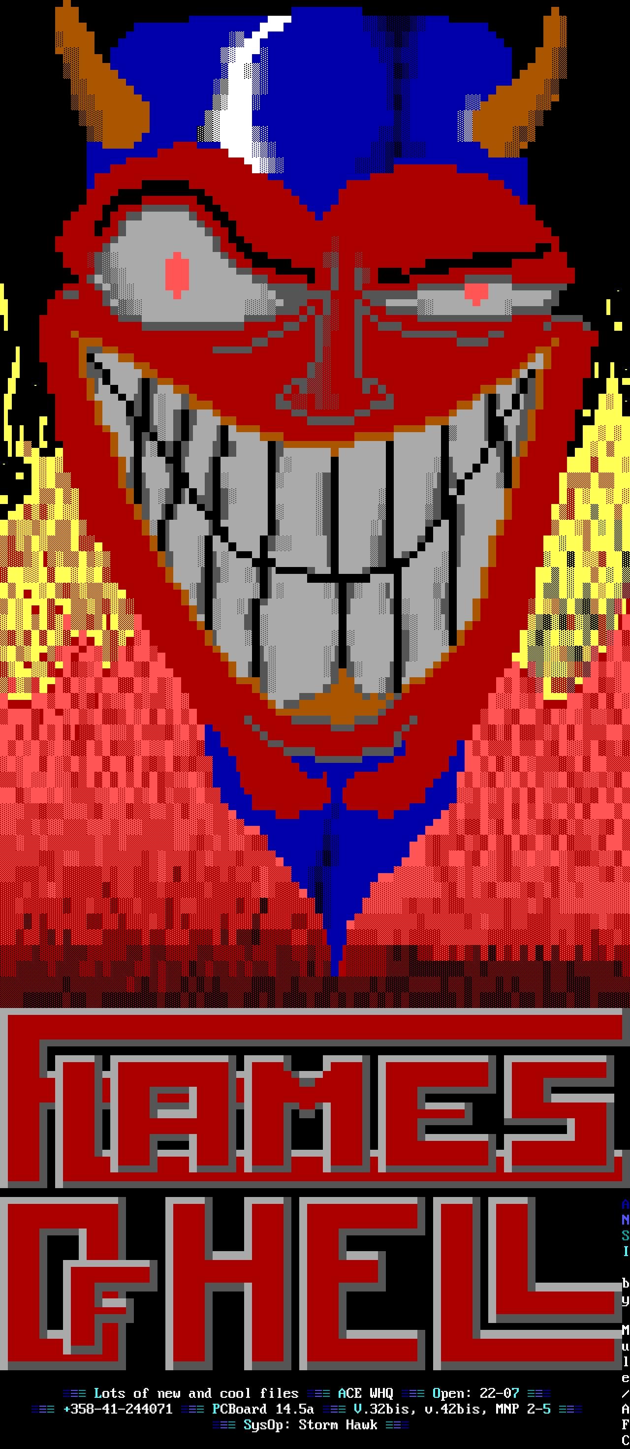 M u l e Lots of new and cool files ACE WHQ Open: 22-07 / +358-41-244071 PCBoard 14.5a V.32bis, v.42bis, MNP 2-5 A SysOp: Storm Hawk F C