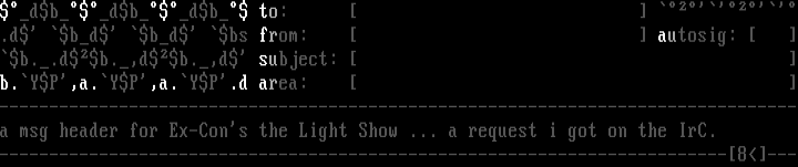 dbdbdb to: .d bd bd bs from: autosig: b..db.,db.,d subject: b.YP,a.YP,a.YP.d area: --------------------------------------------------------------------------------a msg header for Ex-Cons the Light Show ... a request i got on the IrC.
