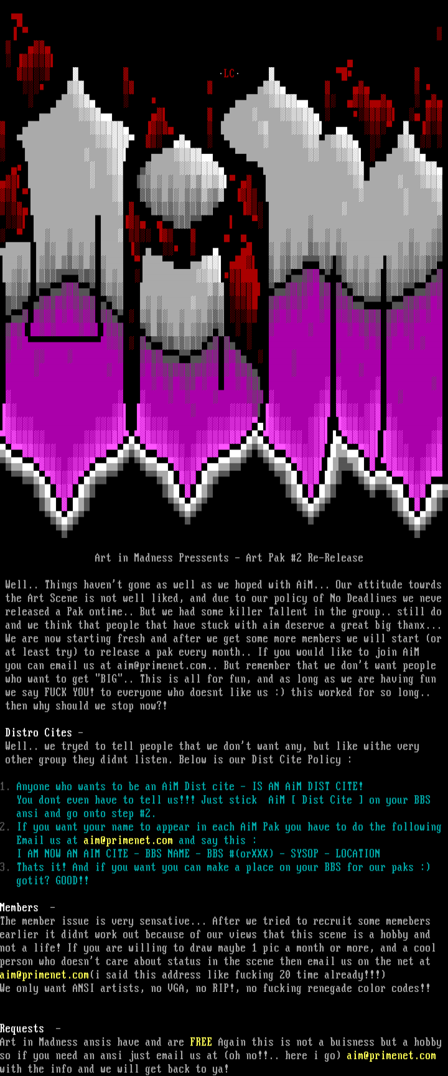 We only want ANSI artists, no VGA, no RIP!, no fucking renegade color codes!!