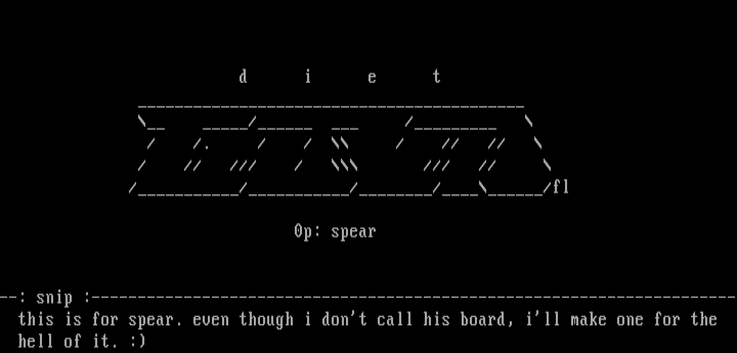 --: snip :---------------------------------------------------------------------- this is for spear. even though i dont call his board, ill make one for the