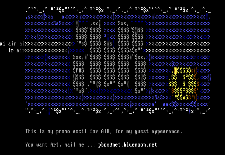 This is my promo ascii for AIR, for my guest appearance.
