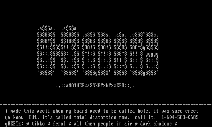 -------------------------------------------------------------------------------- i made this ascii when my board used to be called hole. it was sure ereet