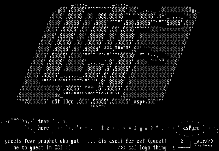 . here , .+ - . . . asPyre . . . greets fear prophet who got ... dis ascii fer csf guest - air//