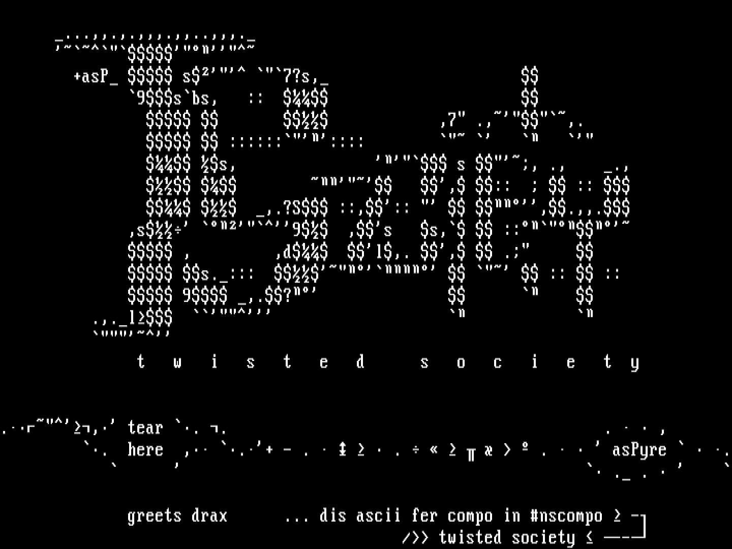 greets drax ... dis ascii fer compo in nscompo -