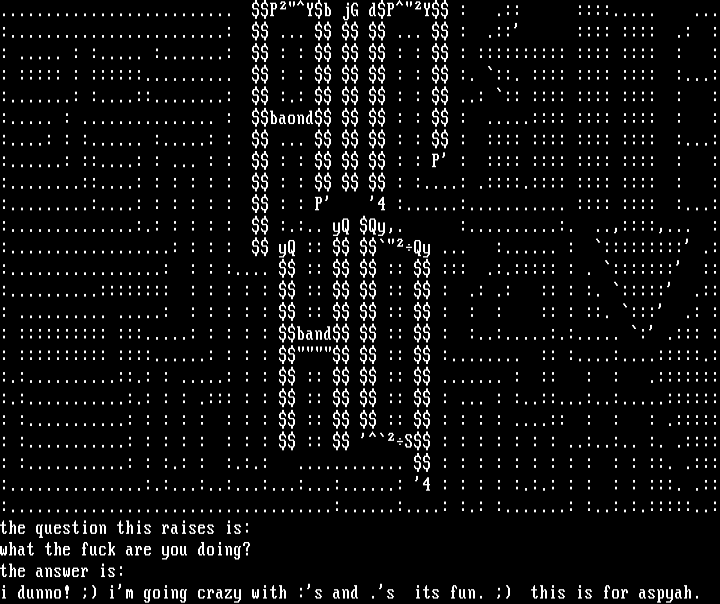 i dunno! im going crazy with :s and .s its fun. this is for aspyah.