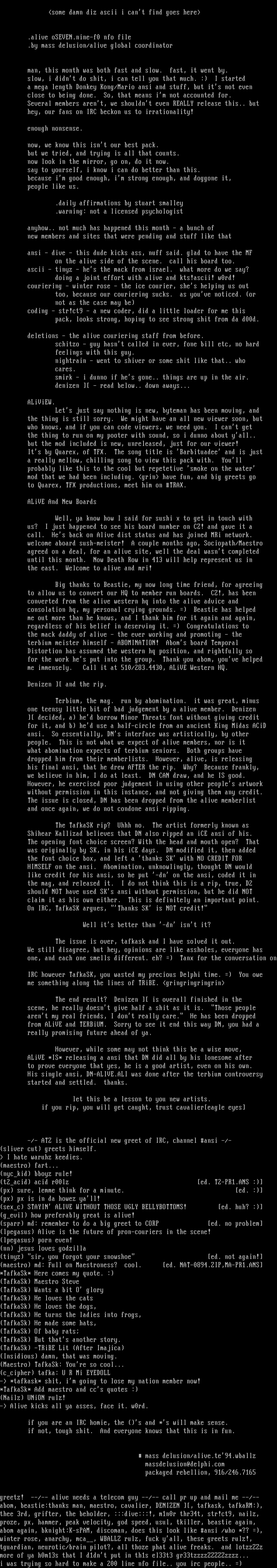 ALiVE *IS* releasing a ansi that DN did all by his lonesome after