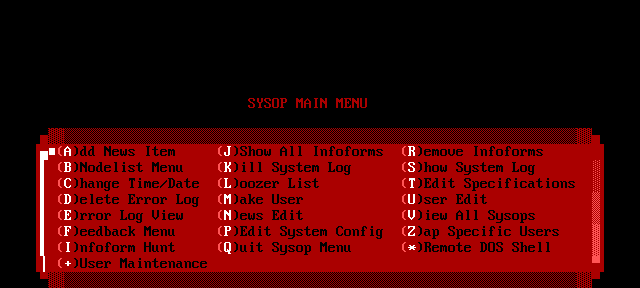 Infoform Hunt Quit Sysop Menu *Remote DOS Shell