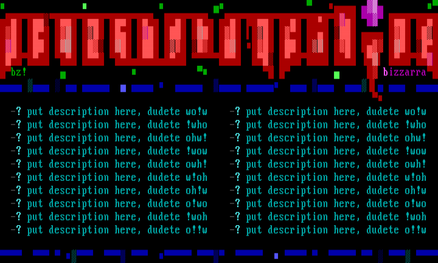 bz! bizzarra -? put description here, dudete wo!w -? put description here, dudete wo!w