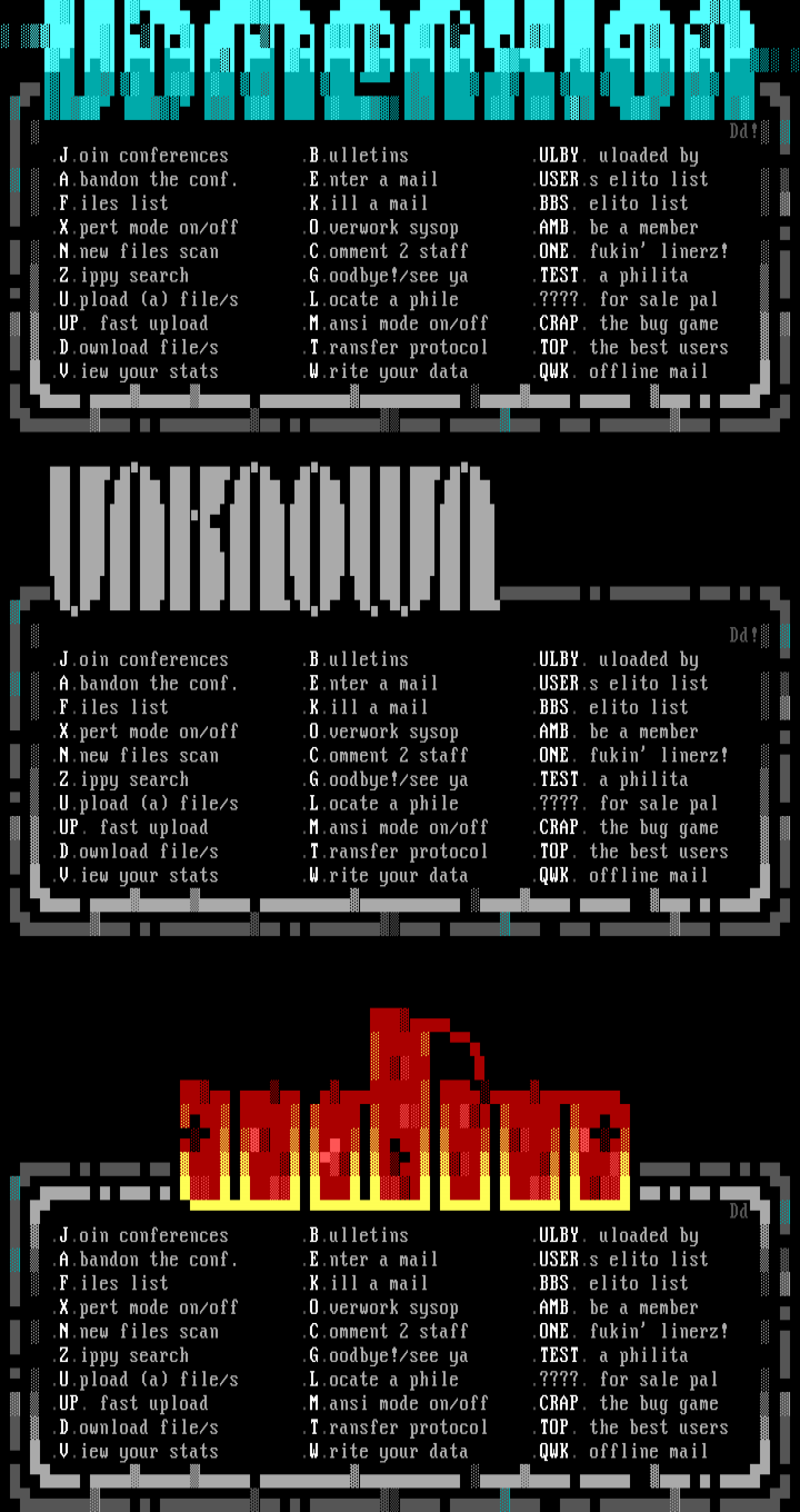 .UP. fast upload .M.ansi mode on/off .CRAP. the bug game