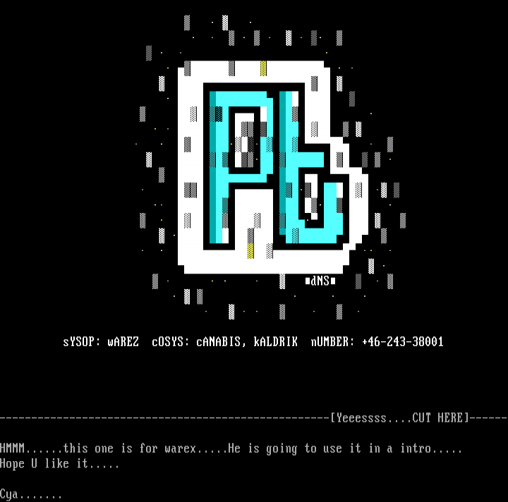 sYSOP: wAREZ cOSYS: cANABIS, kALDRIK nUMBER: +46-243-38001