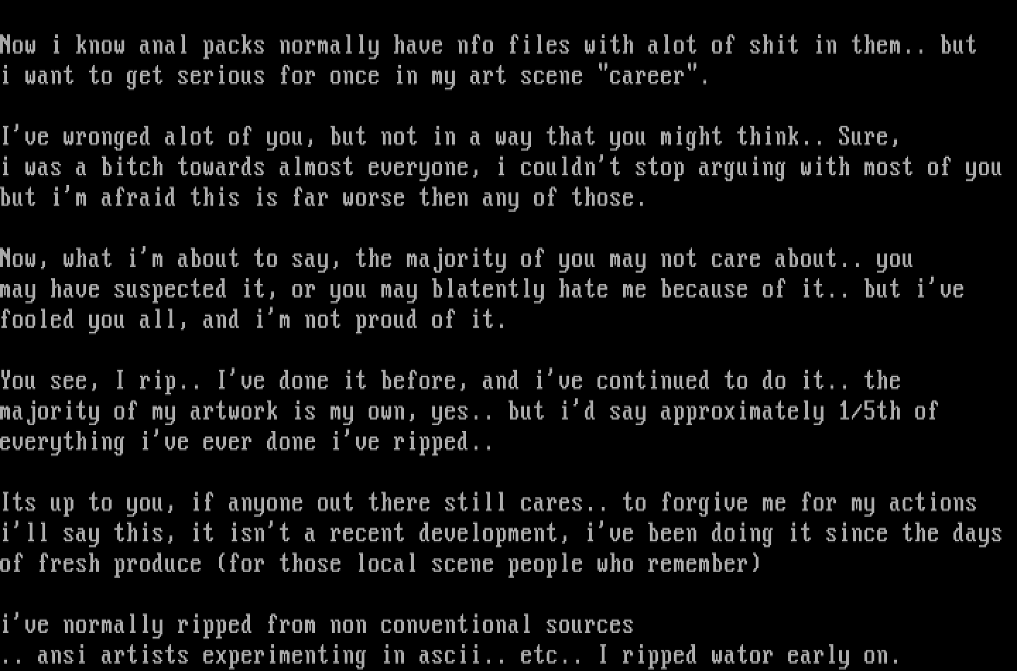 .. ansi artists experimenting in ascii.. etc.. I ripped wator early on.