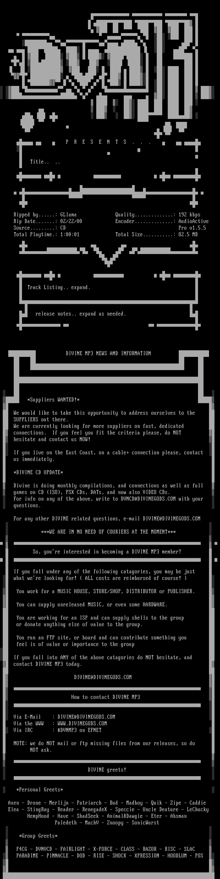 Via IRC : DVNMP3 on EFNET