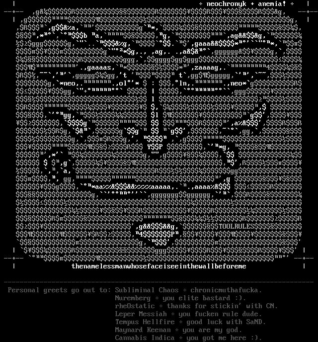Personal greets go out to: Subliminal Chaos chronicmuthafucka.