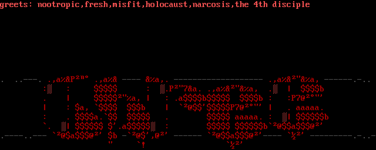 greets: nootropic,fresh,misfit,holocaust,narcosis,the 4th disciple