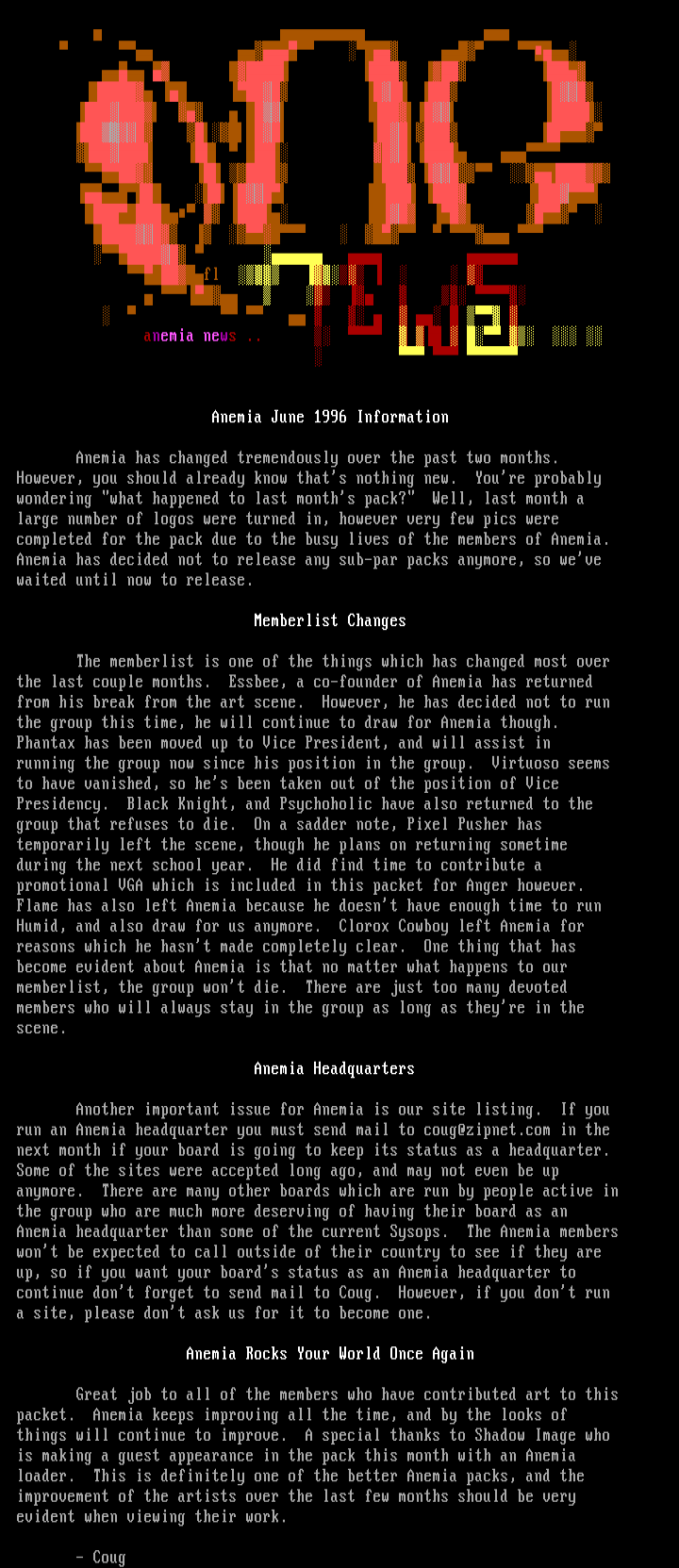 run an Anemia headquarter you must send mail to coug@zipnet.com in the