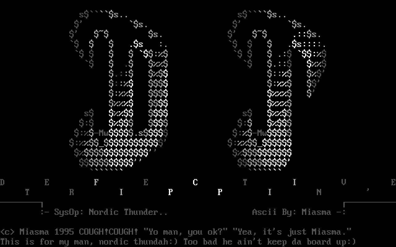 :- SysOp: Nordic Thunder.. Ascii By: Miasma -:
