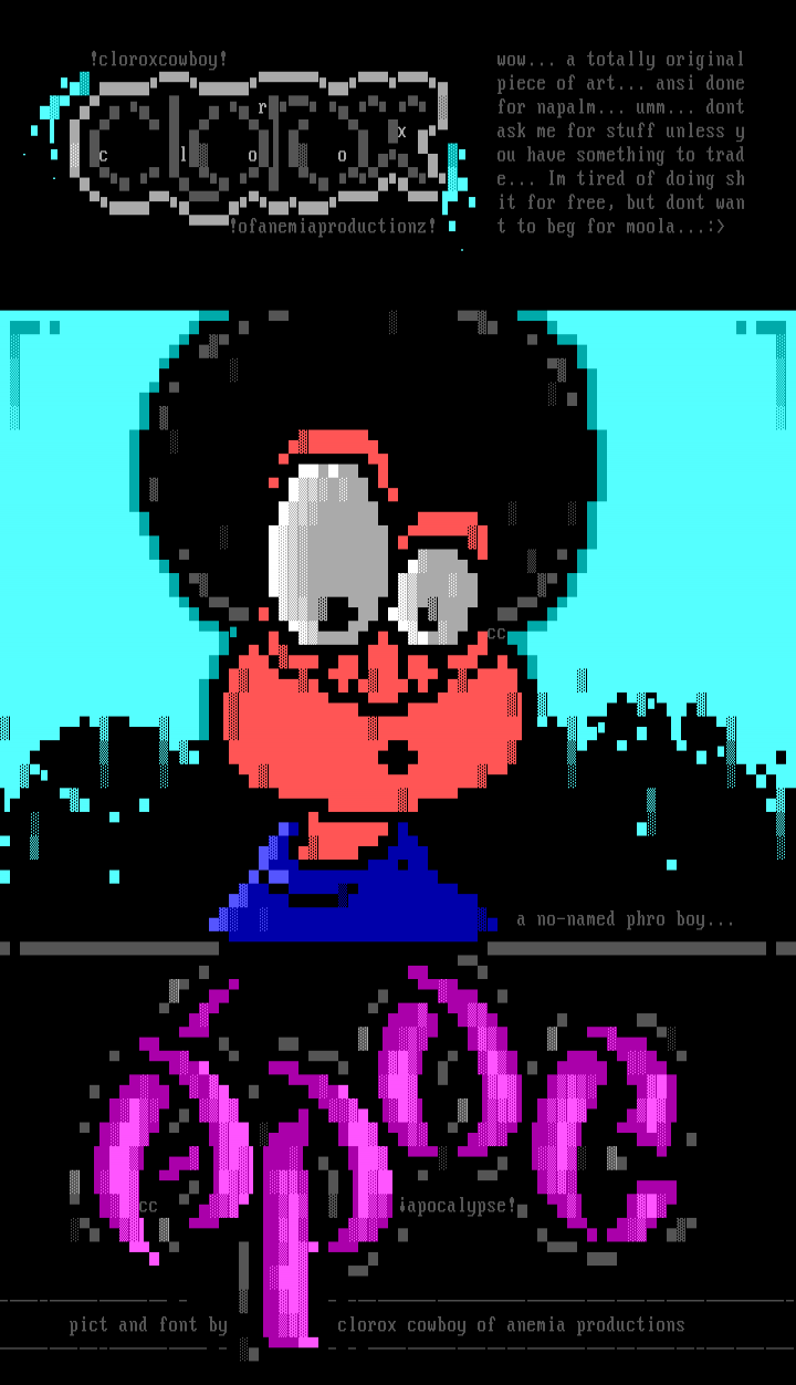 ------ - - ----------- pict and font by clorox cowboy of anemia productions