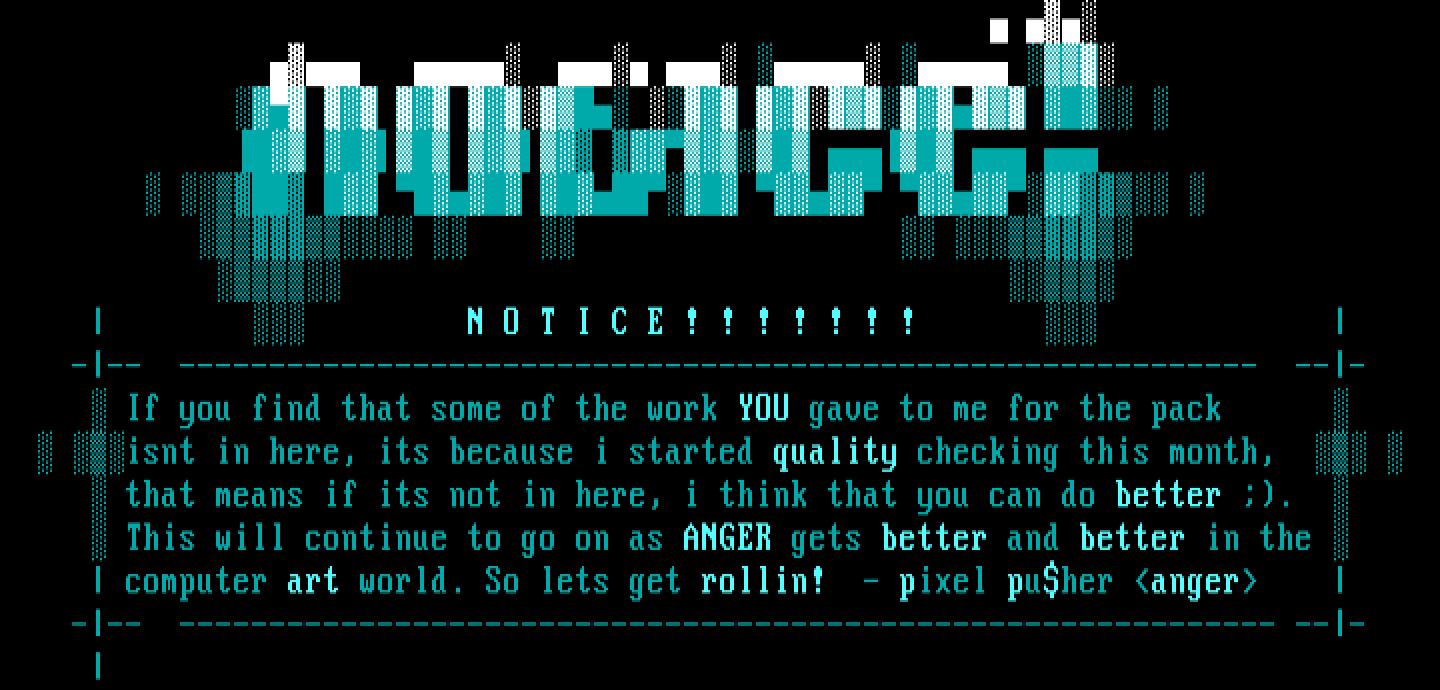 This will continue to go on as ANGER gets better and better in the computer art world. So lets get rollin! - pixel puher anger