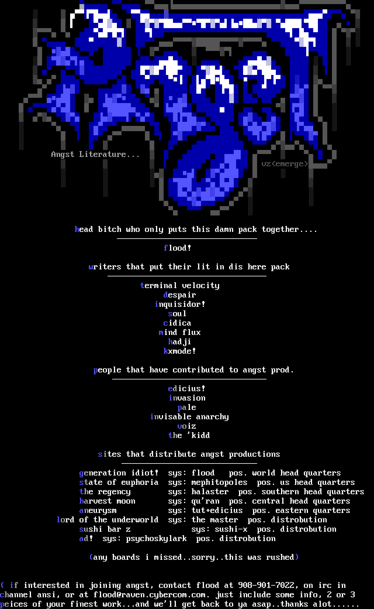 if interested in joining angst, contact flood at 908-901-7022, on irc in