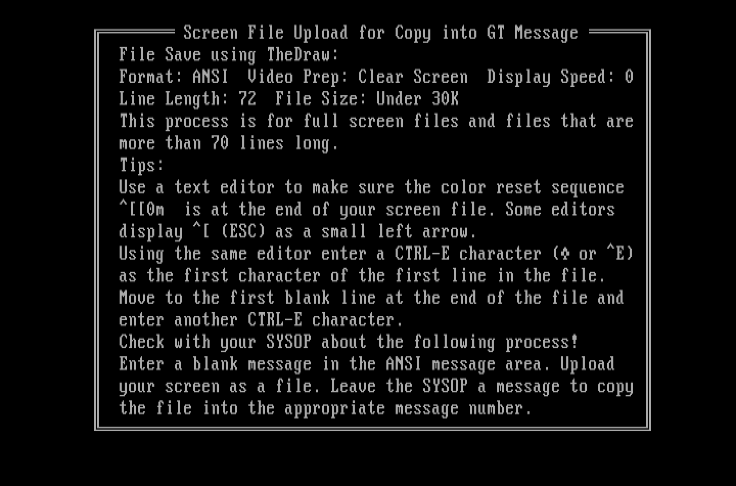Format: ANSI Video Prep: Clear Screen Display Speed: 0