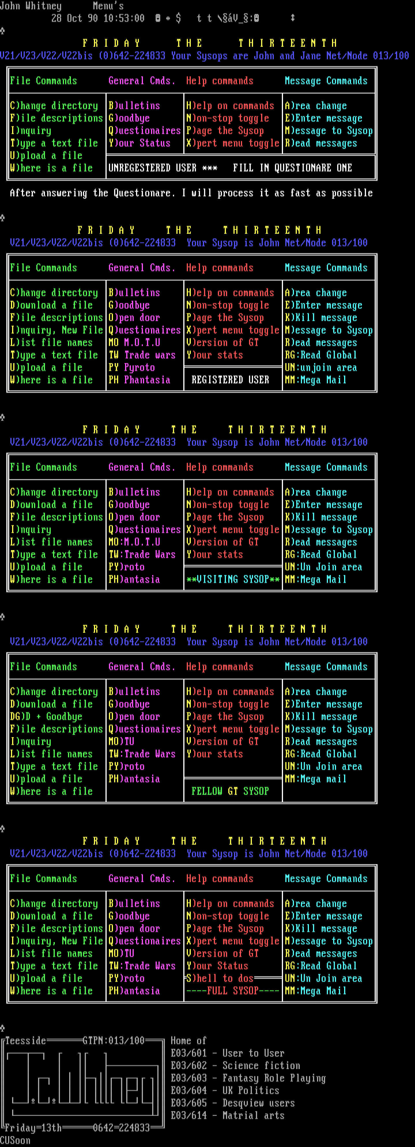 V21/V23/V22/V22bis 0642-224833 Your Sysop is John Net/Node 013/10