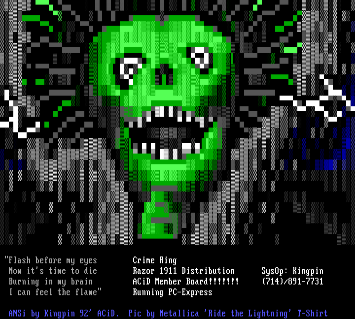 ANSi by Kingpin 92 ACiD. Pic by Metallica Ride the Lightning T-S